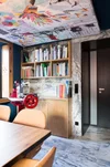 A 35m2 ceiling collage installed in Bar Amicale des Amis, Stayrooms Hotel, Luxembourg. The collages were created by hand in studio then scanned and reprinted at scale, recut on site and pasted to the ceiling, then hand finished with a matt lacquer. The ‘meta-collage’ was intended to be viewed from multiple angles so has no ‘right side up’, creating unusual juxtapositions for the clientele depending on where they engage from. Photos Bärbel Aubert